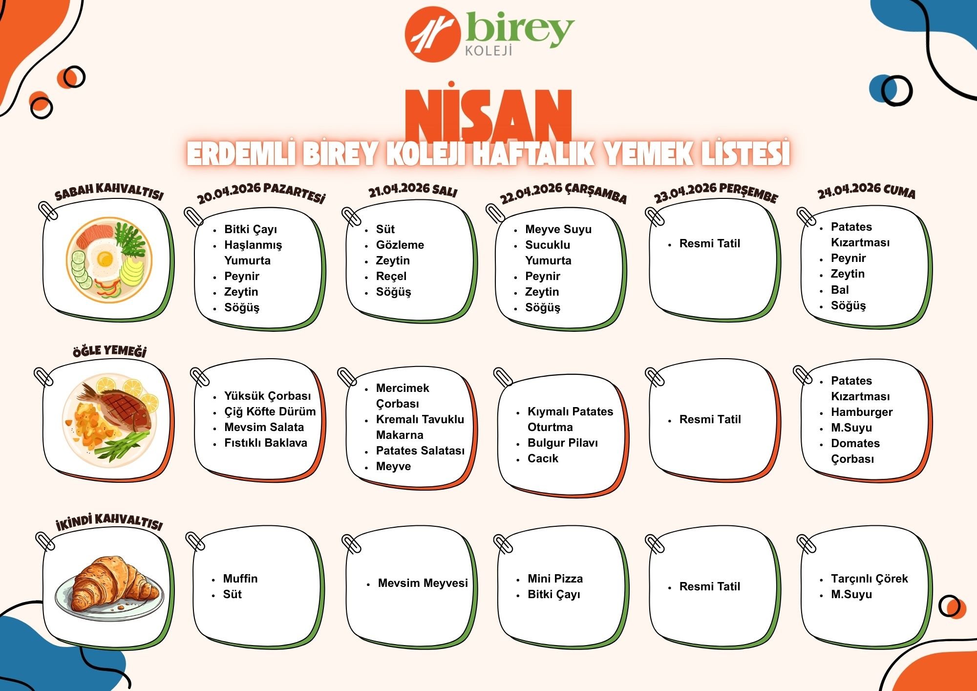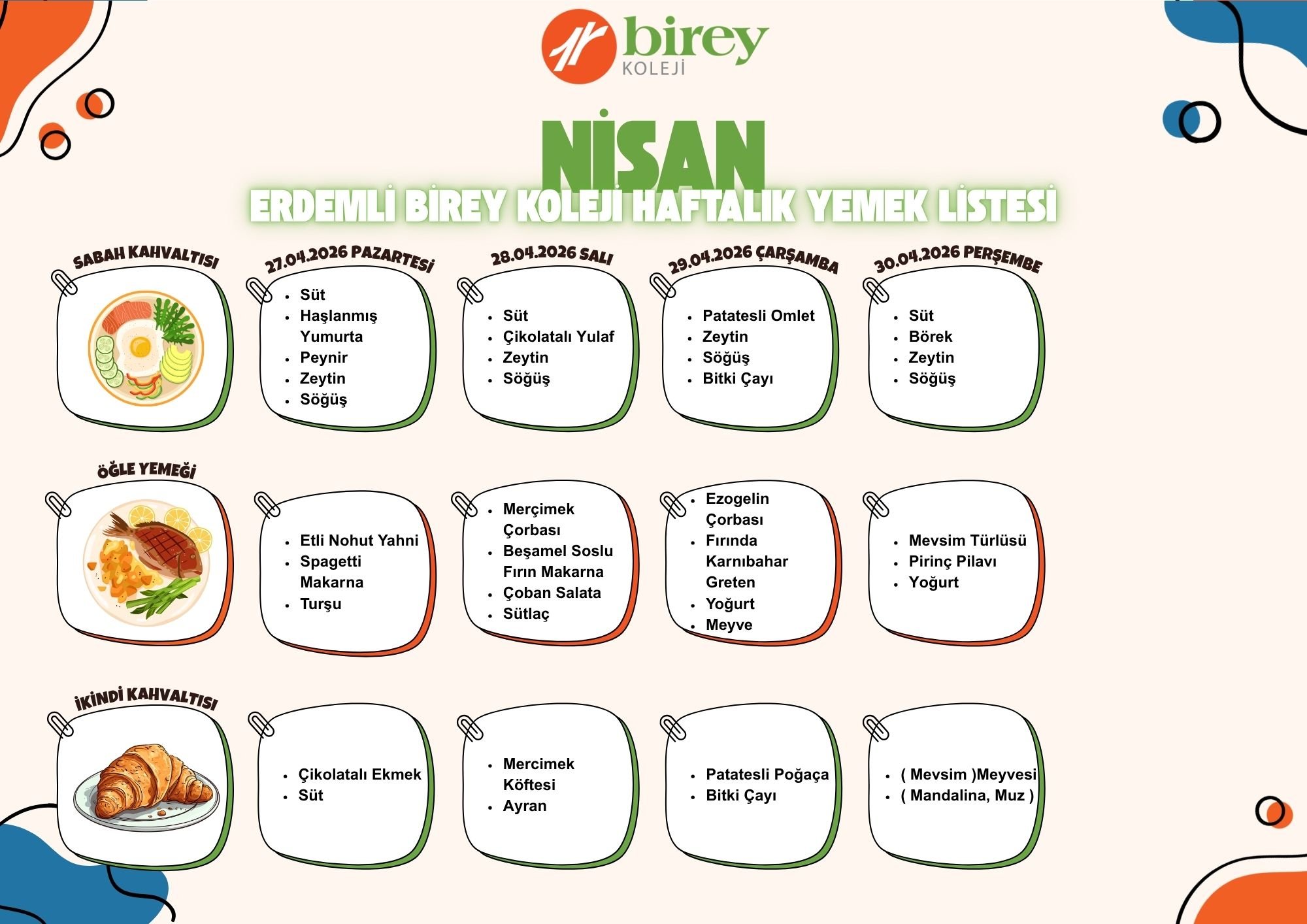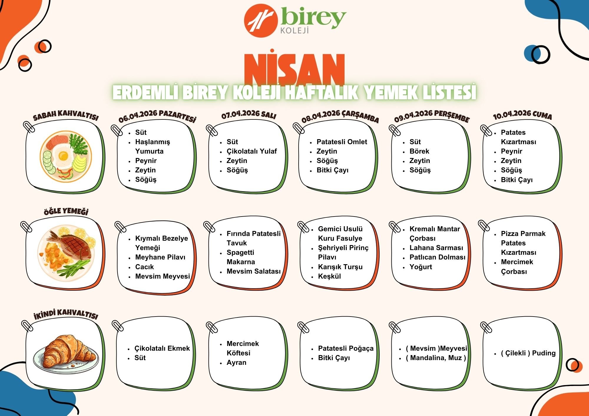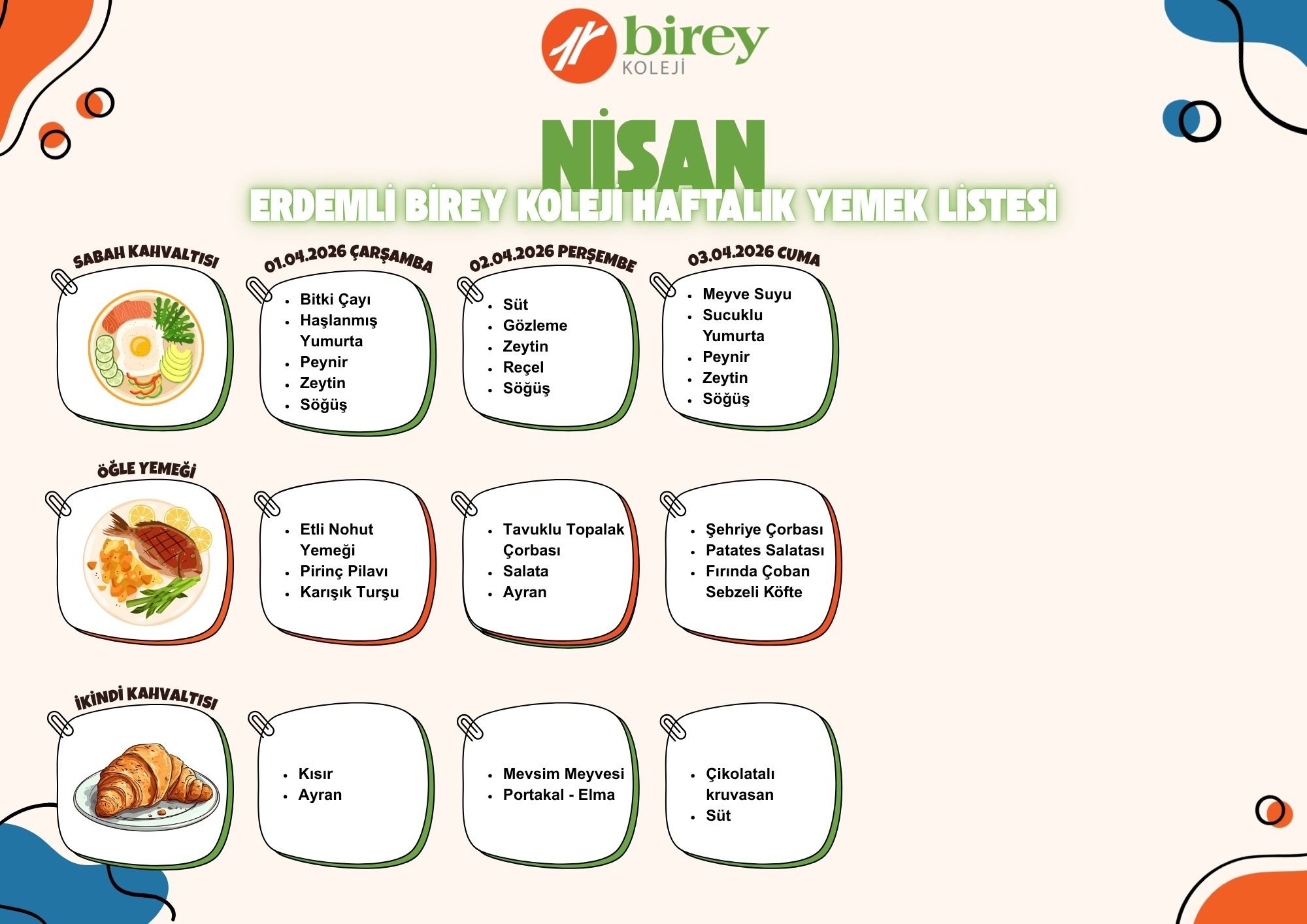 Birey Koleji 2025 Şubat Ayı Yemek Listesi